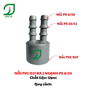 Phụ kiện nối PVC D27 ra 2 ngạnh 8mm và 10mm được dùng rộng rãi trong hệ thống tưới nông nghiệp.